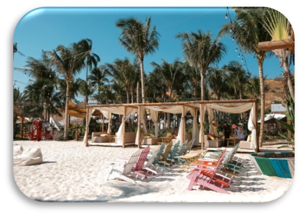 09:00: Xe đưa Đoàn đến Mango Beach tổ hợp du lịch – vui chơi – giải trí nổi tiếng tại Mũi Né, thu hút đông đảo du khách kể từ khi ra mắt. Nằm ngay bên bãi biển tuyệt đẹp cùng hàng dừa cao vút, nơi đây nổi bật với không gian trẻ trung, đầy màu sắc và rất phù hợp cho mọi lứa tuổi. Tại đây, Quý khách có thể: